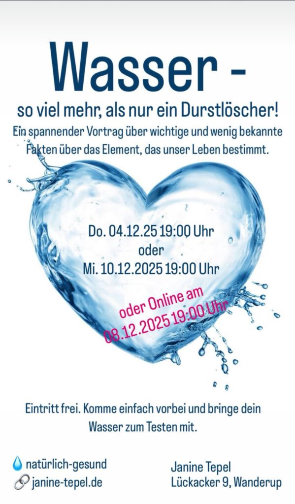 Wasserinfo am Do. 04.12. + Mi. 10.12. im Lückacker oder online am 08.12.2025 Das könnte dir auch gefallen Ätherische Öle Nachmittag am Samstag, 16. November um 15 Uhr 14. November 2024 Wasserinfo 28. Oktober 2024 Ätherische Öle – Info Abend 9. Dezember 2024